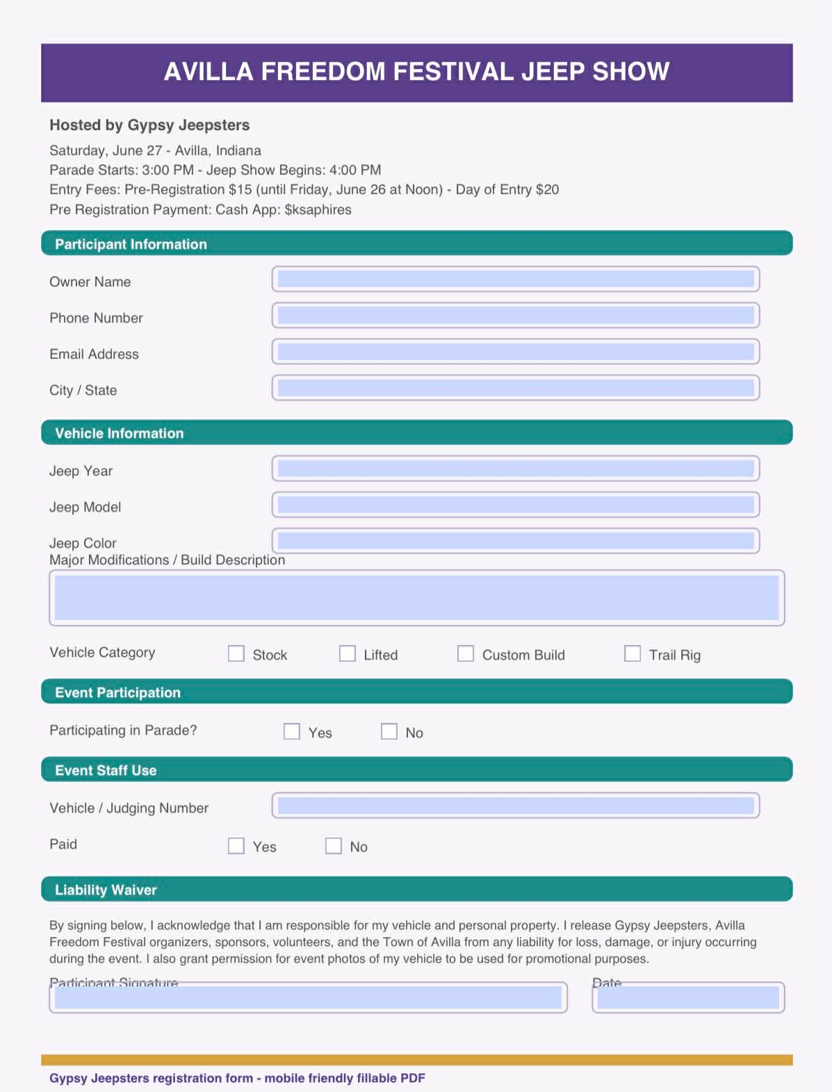 Bring your completed form with you 15 minutes before the contest starts at the festival, or mail in your entry form to